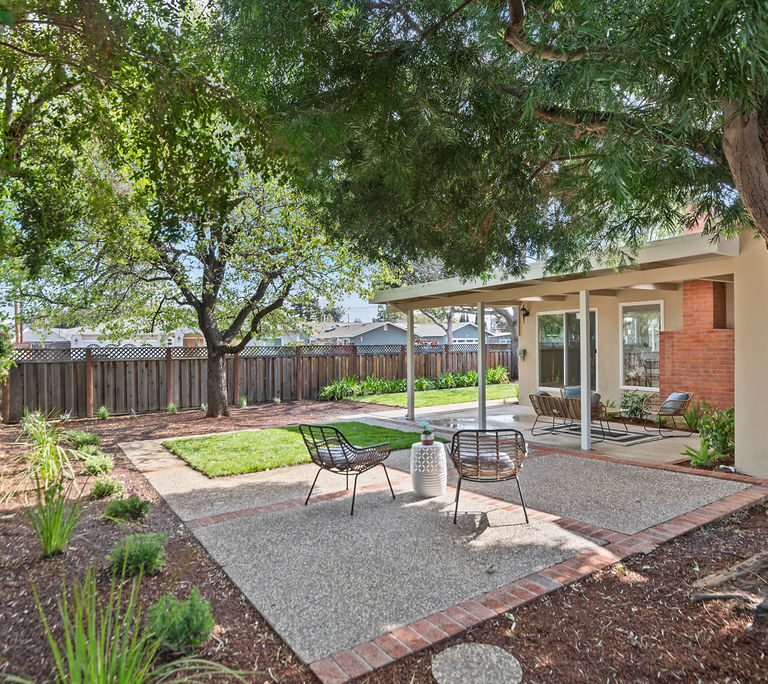 Enjoy the Bay Area’s fantastic year-round weather in spacious backyard with awning; two mature trees that provide ample shade; raised planters perfect for vegetables and herbs; storage shed; and oversized side yards for additional seating, storage, or gardens!