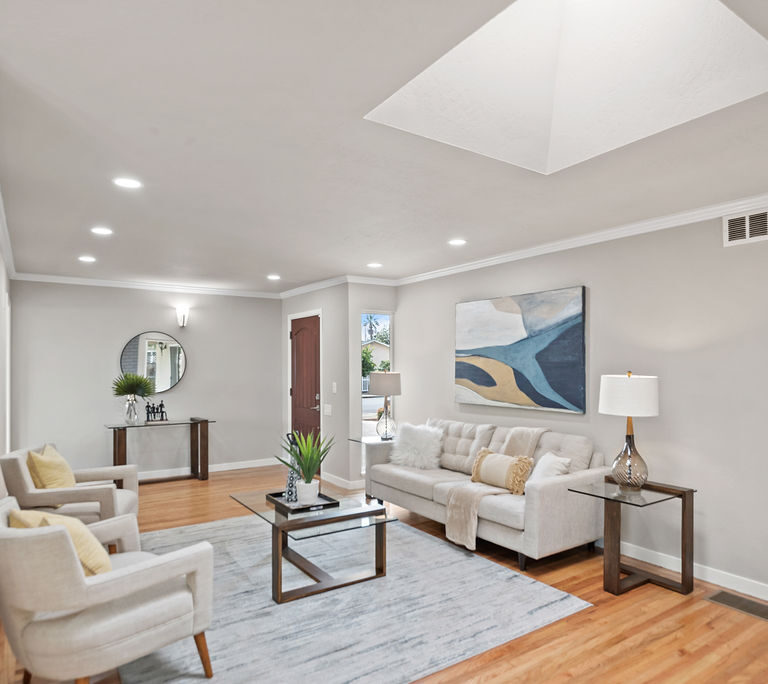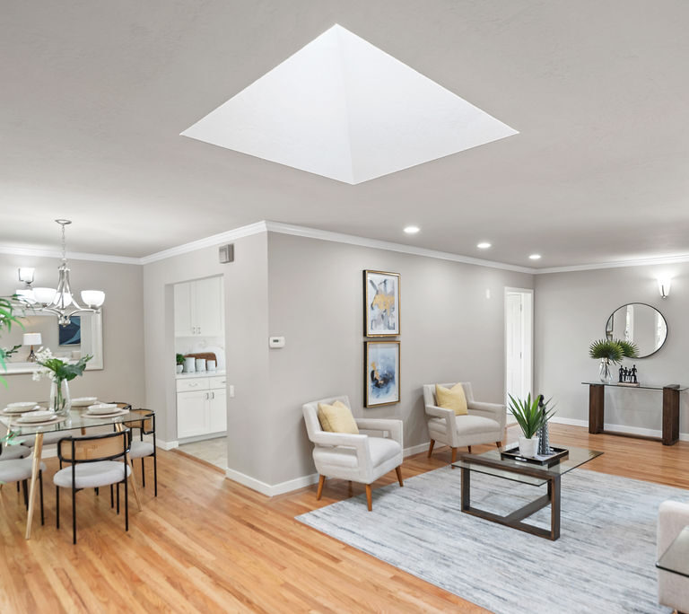 Enjoy the sunlight that streams in from the skylight and plays off the gleaming refinished hardwood floors.